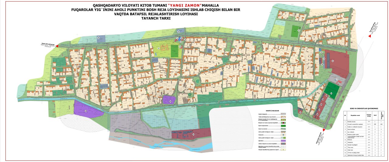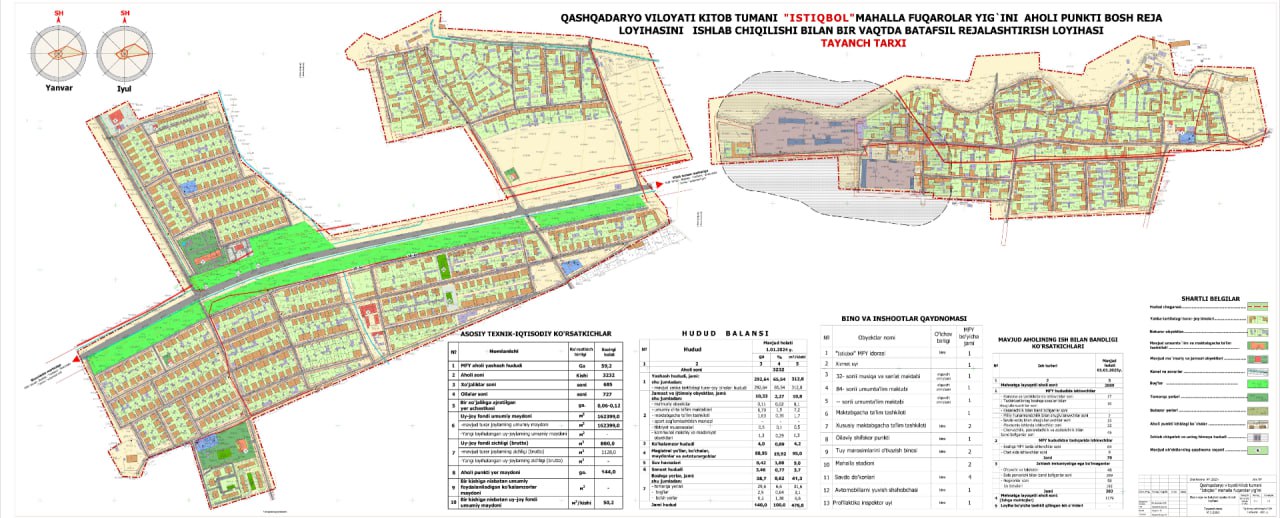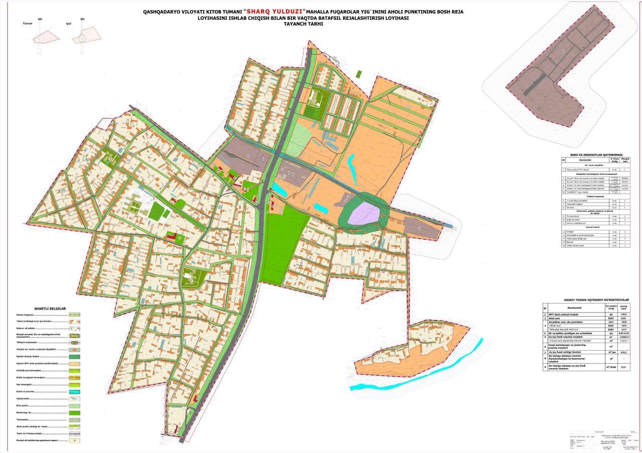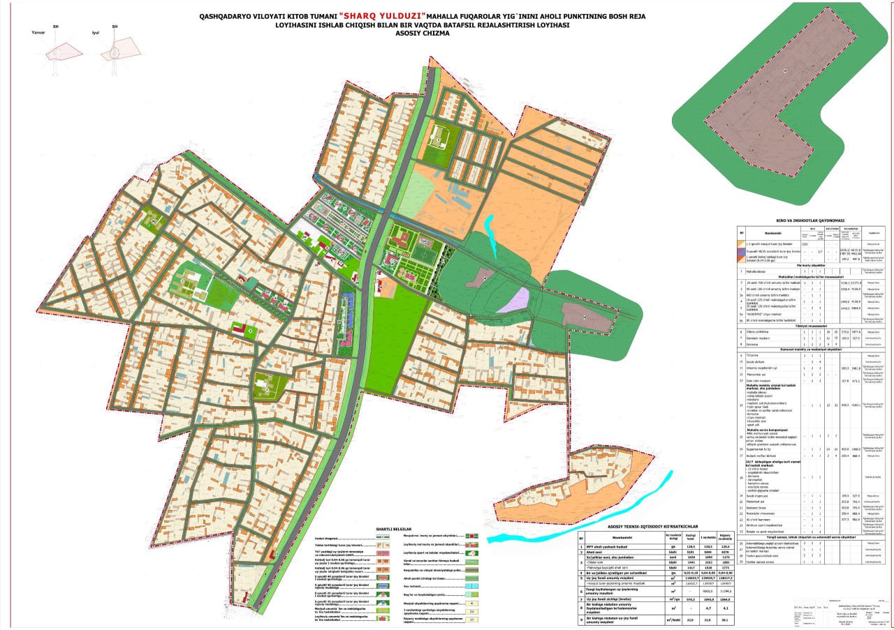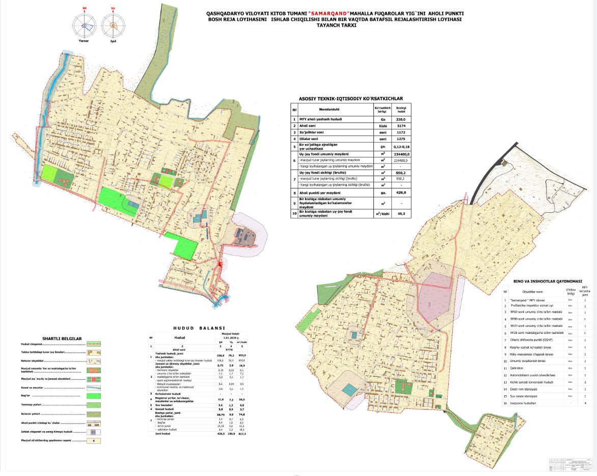 Oʻzbekiston Respublikasi Prezidentining 2025-yil 7-fevraldagi “Qashqadaryo viloyatini ijtimoiy-iqtisodiy rivojlantirishni jadallashtirish buyicha qushimcha chora-tadbirlari to‘g‘risidagi PQ-44-sonli qaroriga asosan Qashqadaryo viloyatining Kitob tumani Samarqand, Qaynar va Sharq yulduzi MFYlari aholi punkitlarining bosh reja va batafsil rejalashtirish loyihalari ishlab chiqildi.